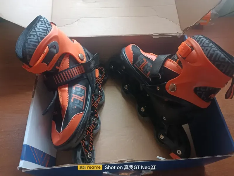 Продаю хороші роликі від Nerf Strive модель STRIVE 941341. В красивому чорно-оранжевому кольорі матеріал: Пластик, Полиэстер Матеріал шассі: алюміній Матеріал колес: поліурітан Діамерт колес 70мм Підшипник Abec 7 Максимальна вага 60 кг