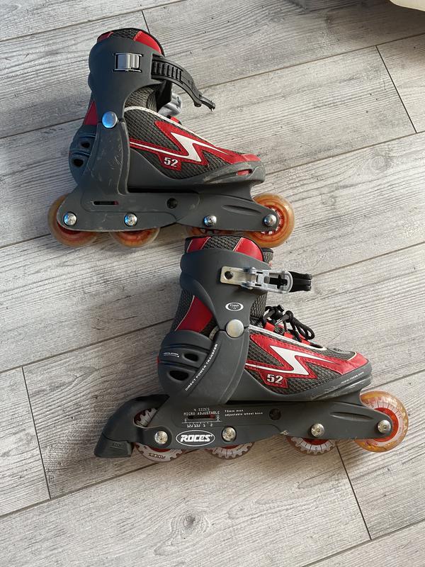 Ролики Roces Італія. Розсувний механізм, розмір 30-35. Зовні черевики з високоякісного матеріалу, внутрішня частина з анатомічної вкладкою. Фіксація - швидка шнурівка, верхній затиск. Коліс 4 штуки, діаметр 72мм. Каталися 2-3 рази. Повністю цілі, є подряпини від їзди, але це на всіх роликах так (останні два фото). Дивіться інші мої оголошення, багато класних речей