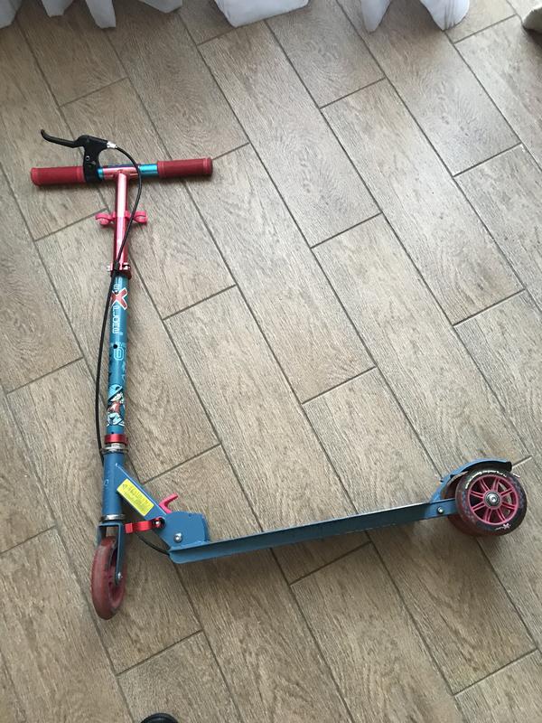 Самокат металевий алюміній легкий з заді два колеса складається висота регулюється спеціальне покриття щоб не скользала нога в гарному стані