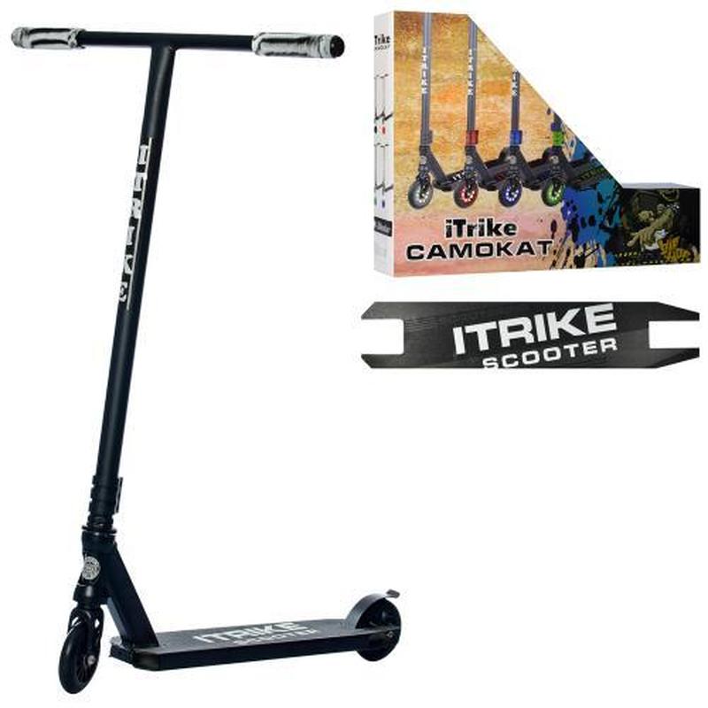 алюм+сталь, трюковый, колеса2штПУ100мм-пласт, руль89см, подножка 51/36-11см, ширина руля 56см, черный, в кор-ке