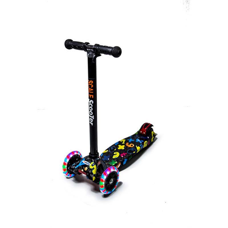 Триколісний самокат scooter з малюнками на платформі популярна модель у дітей і школярів. Це практичний дитячий самокат. Завдяки добре підібраним розмірам основних компонентів і можливості знімати ручку. Також, він дуже яскравий і привертає до себе підвищену увагу. Малюнок нанесений по всій поверхні платформи. Колеса світяться під час руху. Міцна платформа із пластику витримує вагу до 60 кілограмів, вона додатково посилена ребрами жорсткості. Триколісний самокат Maxi має стандартні розміри платформи 33*13,5 сантиметрів - це дуже зручно для дітей під час катання. Досить багато місця для розташування ніг. Зупинити самокат на ходу можна за допомогою ножного гальма, яке знаходиться в кінці платформи. У самоката є два великих колеса діаметром 120 мм і два додаткових ззаду, розміром 80 мм. Два колеса ззаду підвищують комфорт під час катання, а саме, дають додаткову стійкість і поліпшене утримання швидкості. Матеріал коліс: м'який поліуретан. Він безшумний і бере на себе більшість вібрацій від нерівних тротуарів і плитки, що запобігає підвищеній напрузі на ноги райдера. Розігнати самокат максі досить просто зі встановленими підшипниками класу abec7. Самокат best scooter має міцну металеву ручку з прогумованими рукоятками, щоб руки не ковзали.