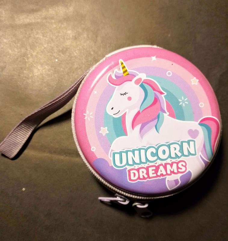 Монетница единорог розовая металл круглая, unicorn dreams, для наушников и мелочей, девочк...