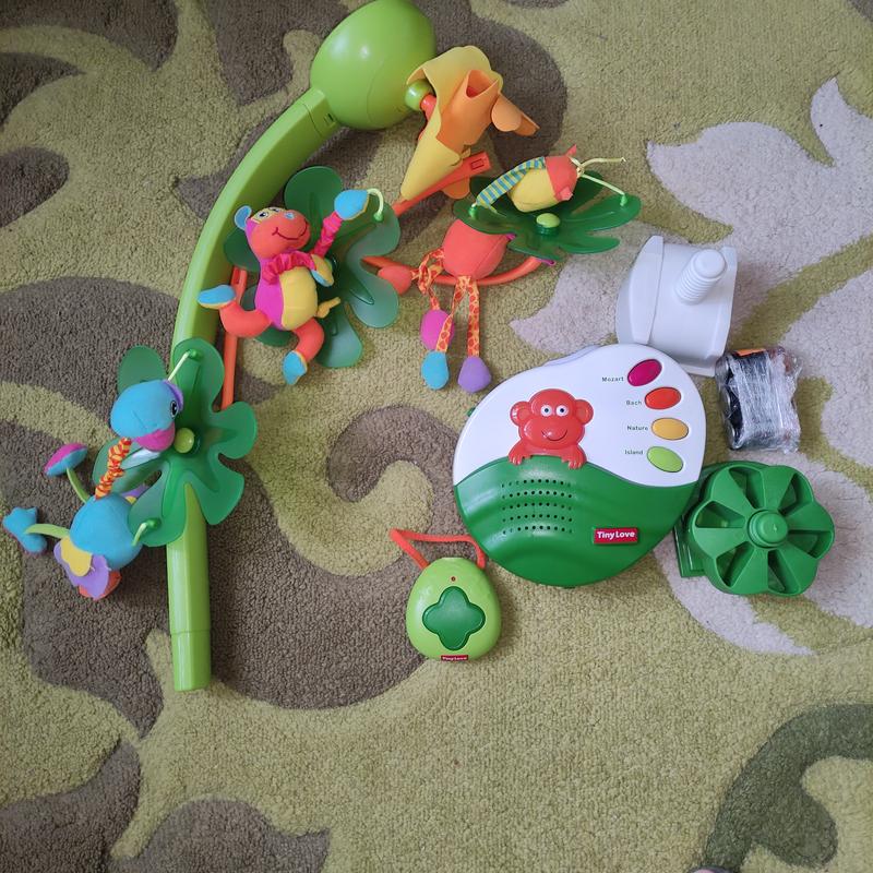 Приятная музыка и медленные движения одновременно успокаивают вашего малыша и стимулируют его развитие. Мягкая музыка и спокойные движения мобиля привлекают внимание вашего ребенка, успокаивая его и готовя ко сну. 20 минут классических мелодий и звуков природы Может выступать в роли магнитофона и ночника 2 уровня громкости и кнопка отключения звука Дистанционное управление. Я очень довольна была мобилем,ребенка не приходилось часто брать на руки,т к был увлечен им,утром когда хотелось полежать,а ребенок проснулся,включала с пульта и была возможность еще не вставать.плюс большой в том,что можно включать и выключать,чтобы ребенок не видел родителей,т к он уже переключается на них..отдаю батарейки к нему дюрасел.их хватает месяца на 3,а купила их в пользовании около месяца были..пользовались примерно месяцев до 10..ребенок засыпал под музыку...состояние хорошее.смотрите другие мои объявления