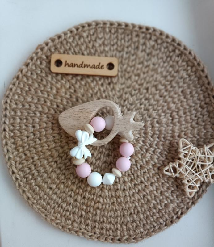 Грызунок - прорезыватель "Нежность" для вашего малыша 🐰 из дерева и пищевого силикона. Также помогает развивать мелкую моторику, сенсорику и тактильную память. Ручная работа 🙏