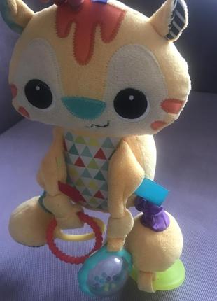 М який матеріал приємний на дотик; Прорізувач у формі пелюстки, два різнокольорових кільця та брязкальце. стимулюють розвиток тактильних навичок. .