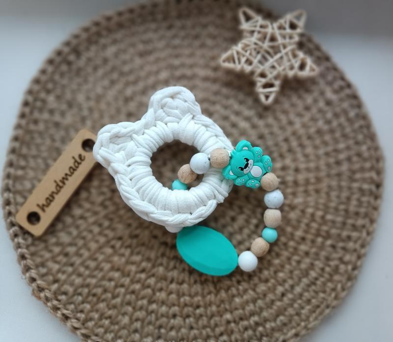 Гризунець для малюка з дерева, пряжі та харчового силікону ❤️ Незамінний при прорізуванні зубчиків, розвиває моторику пальчиків та сенсорику. Добре миється. Ручна робота 🙏 Дивіться інші мої товари, приємні та різні ціни 🐞