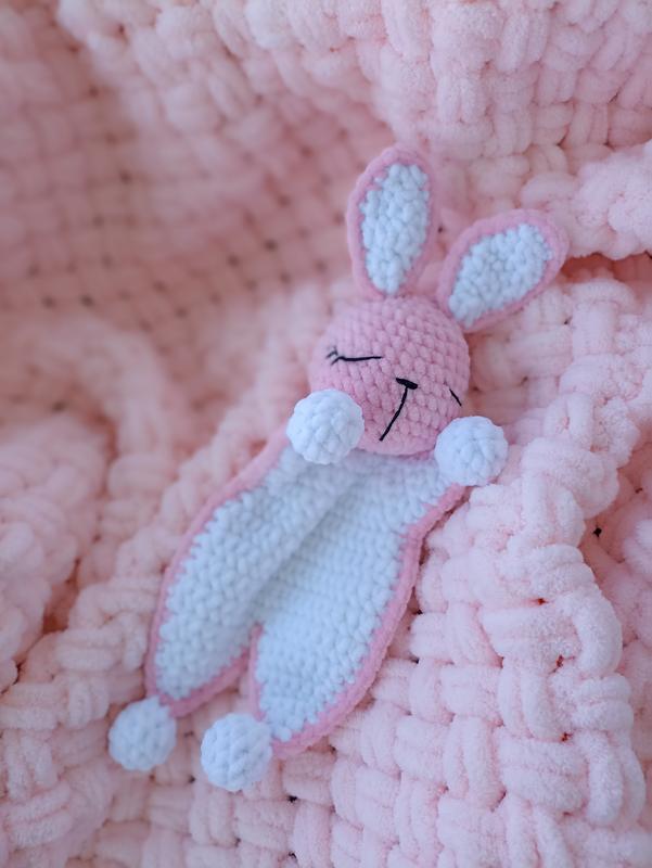 комфортер зайчик плюшева гіпоалергенна пряжа срок виготовлення 2-4 дня можливе виконання в будь-якому кольорі Комфортер – це перша іграшка у житті малюків Створено з любов'ю спеціально для новонароджених Порада досвідчених мам: носіть іграшку ближче до тіла та прикладайте до себе під час годування. З комфортером, просоченим запахом коханої мами, сни малюка спокійні та солодкі. В обіймах улюбленого комфортера малюк відчуватиме вас поряд -Оптимальний розмір для малюків; -Безпечний та гіпоалергенний матеріал підходить для новонароджених -Іграшка плоска, не заважає сну -Безпечно залишати в ліжечку на ніч Можливо виготовлення в іншому кольорі і образі