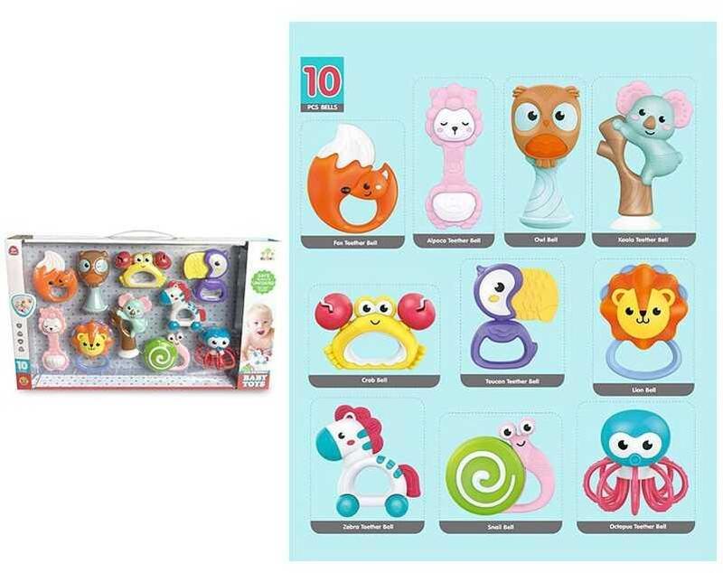 Отличный набор из 10-ти погремушек с грызунками – лучший компаньон для малышей в возрасте от 3-х месяцев. Игрушки будут тренировать мелкую моторику малыша, фокусировать ее внимание на интересных элементах, издающих разнообразные звуки, способствовать развитию слухового, зрительного и сенсорного восприятия, что в результате скажется на развитии речи ребенка. А мягкие и эластичные текстурные элементы снизят неприятные ощущения при прорезывании зубчиков. Особенности: - в наборе представлены 10 погремушек; - погремушки выполнены из безопасных для здоровья ребенка материалов; - игрушки можно стерилизовать; – имеют оригинальный дизайн в форме животных; - некоторые из игрушек имеют вращающиеся элементы; - погремушки имеют приятную цветовую гамму; - 6 из 10 погремушек оснащены прорезывателями. * Характеристики и комплектация товара могут изменяться производителем без уведомления