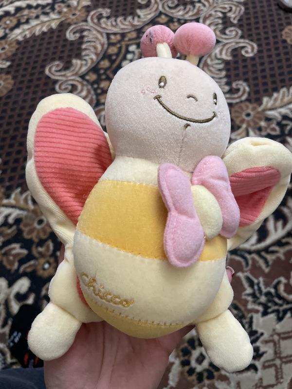 Цепляеться и к кровптке и к коляске Оттягивать баночку и играет музыка