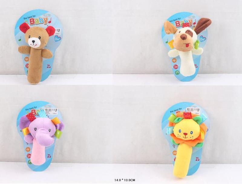 Брязкальце у ручку м'яке XQ308A/B/C/D м'яке, 4 види мікс, планшет 13*14см