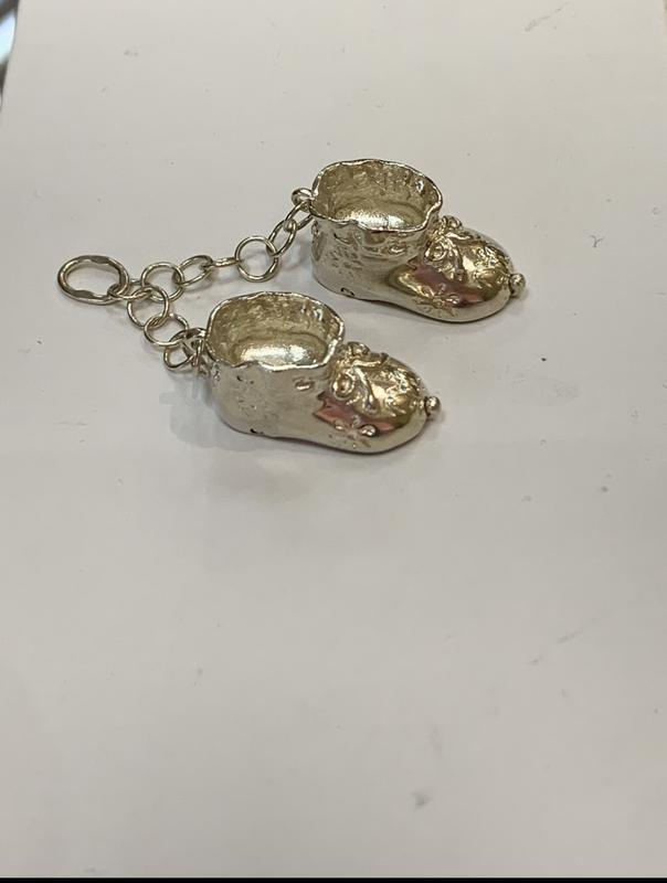 Підвіска іграшка чобітки із срібла 925 проби для коляски чи ліжечка, вага виробу 15,52 грами, кожен чобіток відкривається для зберігання першого зубчика чи локона. В наявності інші срібні дитячі іграшки та акцесуари пишіть скину додаткові фото.