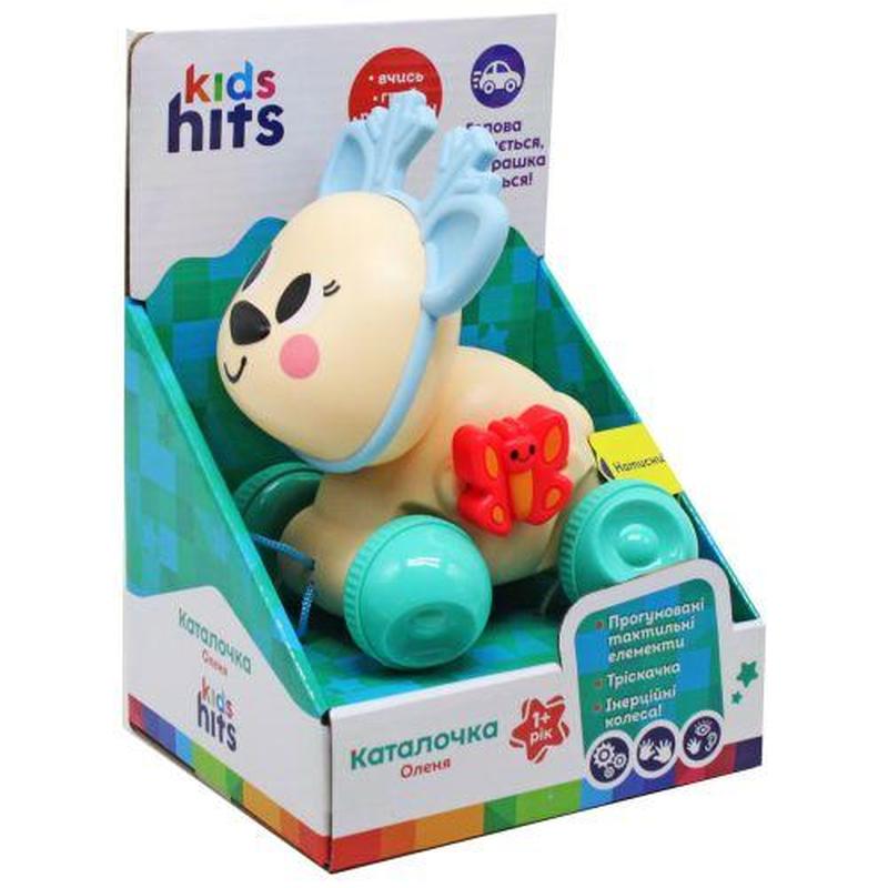 Яскрава каталка з тактильними й активними елементами привабить кожну дитину та допоможе розвинути моторику та сенсорику під час гри. Інерційні колеса, під час руху обертає головою. На боці в іграшки є приємна тріскачка. Колеса прогумовані.