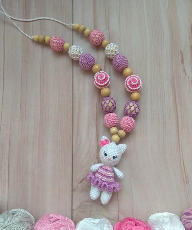 Слінгобуси з Кішечкою (брязкальцем) для дівчинки❤️ 🌿100% натуральні матеріали (бавовна, намистини з клена, черешні та бука) Прекрасний подарунок для молодої мами і малятка🎁 Товар виготовляється на замовлення