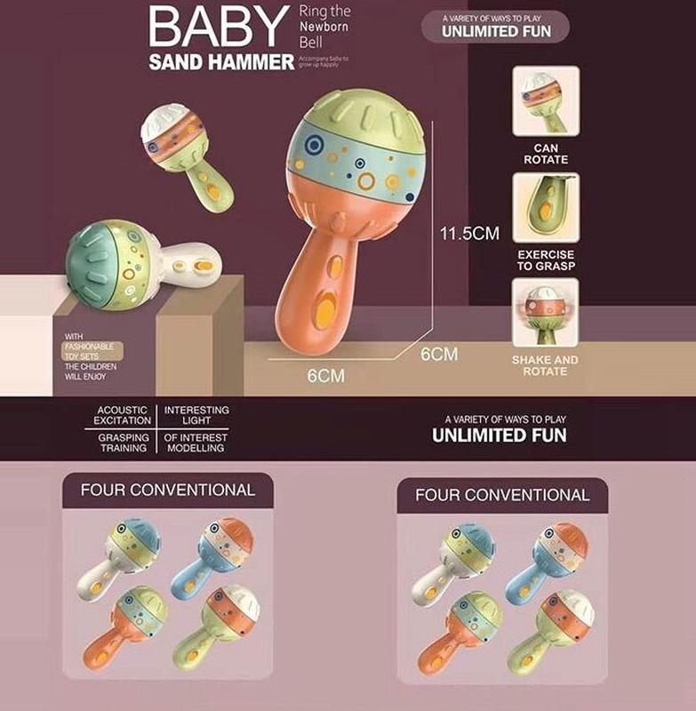 Брязкальце - перша іграшка для малюків, яким вже виповнилось 3 місяці. Саме з цього віку малечі починають досліджувати навколишній світ і знайомляться з різноманітністю кольорів, форм та звуків. Брязкальце виконано у вигляді маракаса, який зручно тримати у руках. Трохи потрясіть іграшку, і почуєте приємний відволікаючий звук. Фактурна поверхня та рухлива частина верхівки подарують малечі нові тактильні відчуття, а приємна колірна гама та кольорові кружечки - візуальне задоволення. Під час гри дитина буде розвивати дрібну моторику рук, зорове, слухове і тактильне відчуття. Особливості: - іграшка представлена у 4 кольорах; - брязкальце виконане у вигляді маракаса; - відрізняється вдалим поєднанням пастельних відтінків; - виконана з первинного пластику, безпечного для дитини; - має фактурну поверхню та зручну ручку; - частина верхівки може обертатися по колу; - іграшка актуальна для дітей віком від 3 місяців. * Характеристики та комплектація товару можуть змінюватися виробником без повідомлення
