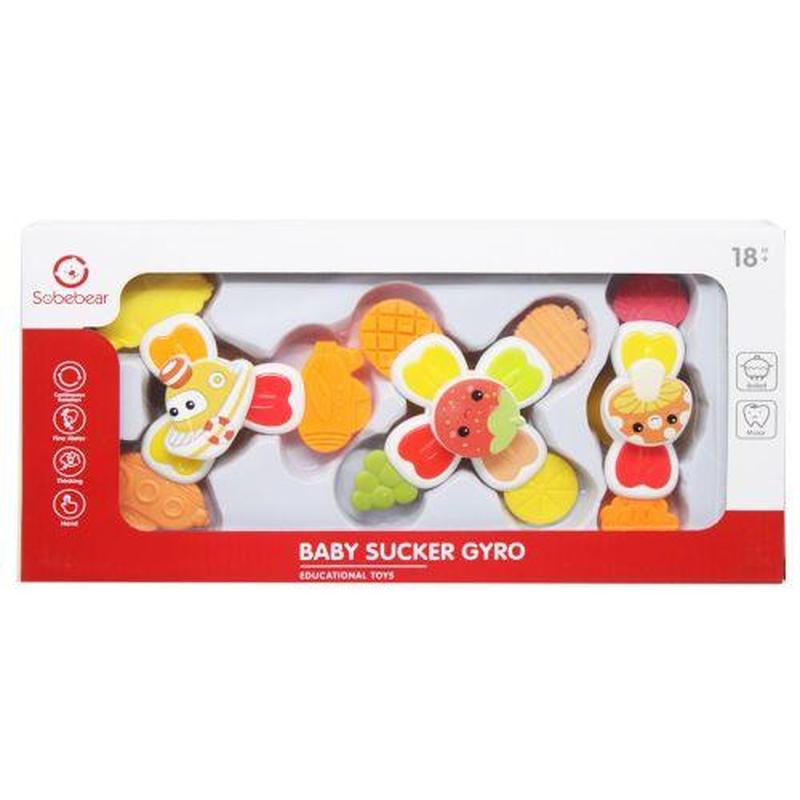 Набір із трьох милих іграшок-спінерів, які можна прикріпити на будь-яку гладку поверхню за допомогою присосок. На кожній іграшці є гумові елементи, які можна використовувати як прорізувачі. Спінери можна прикріпити на стінки ванної чи на столик. Довжина іграшки – 10 см. Бренд: Sobebear Упаковка: Коробка Колір: Різнобарв'я Вага з упаковкою: 130 г Габарити в упаковці: 4.5 x 16 x 32 см Габарити без упаковки: 4 x 10 x 10 см Країна виробник: Китай Матеріал: Комбінований Комплектація: 3 спінери