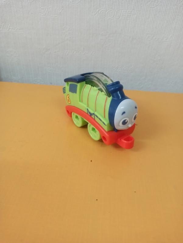 Іграшковий поїзд Персі легко взяти в руки та легко котити Діти можуть катати іграшку за допомогою центрального колеса Колесо, що обертається, містить пластикові кульки, які гримлять, коли Персі котиться З’єднується спереду назад (через з’єднувач) або збоку (через колеса) з іншими роликами Rattler (продаються окремо)