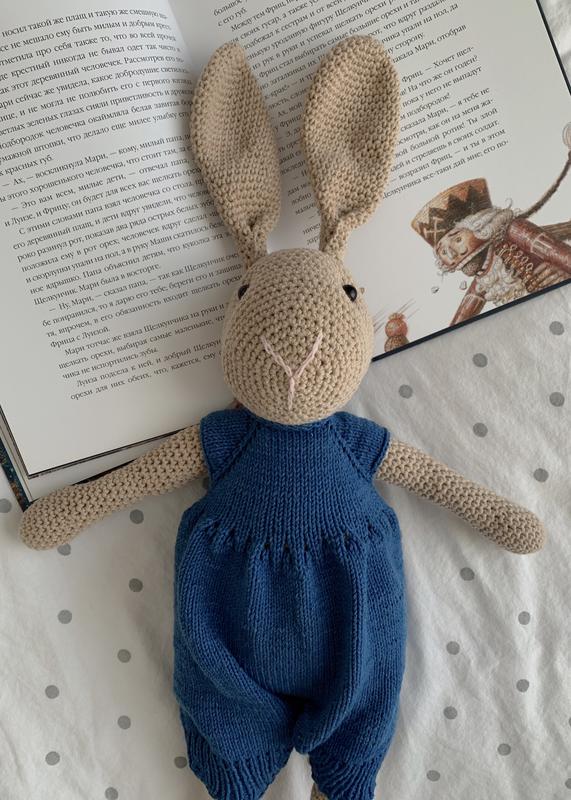 повністю ручна робота Зріст з вушками 51 см, без вушок приблизно 40 см. Зайчик в наявності, також можливий повтор в іншому кольорі одягу та взуття , можна додати ініціали чи ще щось . Крафтове пакування 🎁