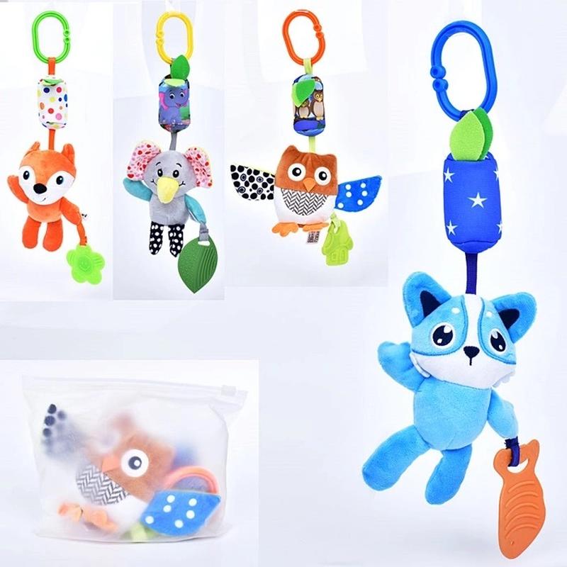 Підвіска на коляску D146B-C-D-E 4види, 34-37см, тварини, плюш., брязкальце, звук, проріз., в пакеті 20*17*5см