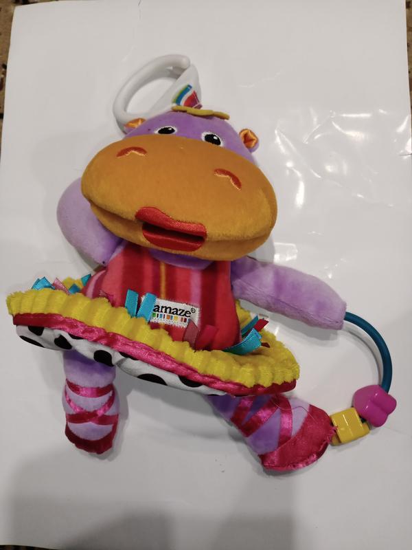 Цікава іграшка бегемот у балетній пачці, яка шелестить, у руці тримає обідок із двома намистинами, які можна крутити і переміщати. Зверху є тримач, підвіска. Фірма Lamaze. У бегемотихи відкритий рот, видно два зуба). Надішлю новою або укрпоштою після оплати на карту.