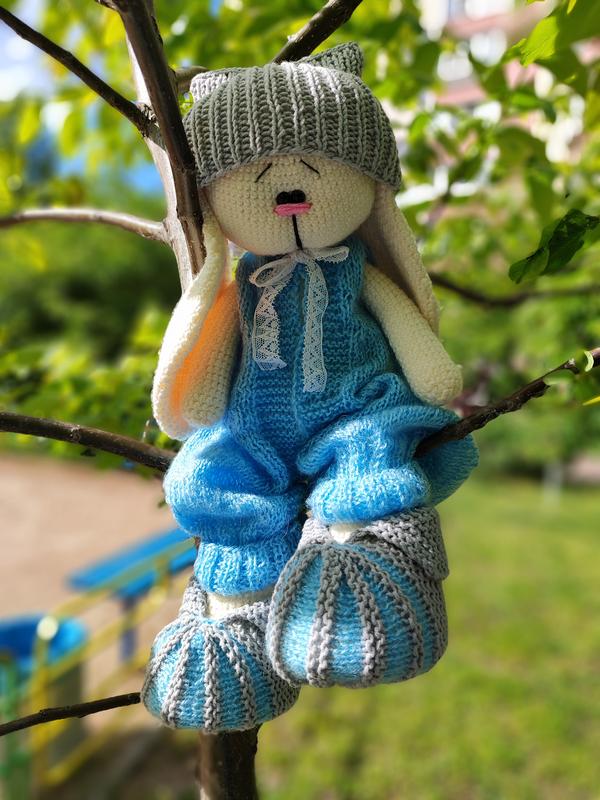 Заяць в'язаний гачком .тільда. заяць.интерьерная игрушка. мягкая игрушка.вязаная игрушка.