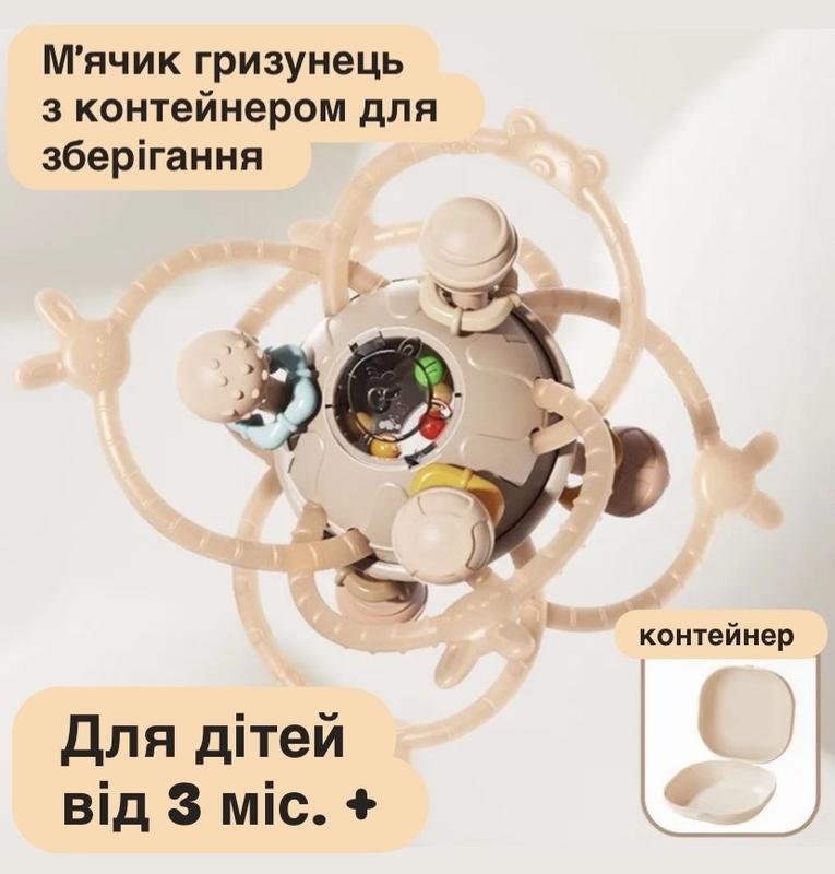 Пропоную м’який м’ячик-гризунець із контейнером для зберігання — чудова розвивальна іграшка для малюків від 3 місяців. 🔸 Безпечний матеріал 🔸 Зручно тримати в ручках 🔸 Знімає свербіж ясен під час прорізування зубчиків 🔸 Контейнер у комплекті для гігієнічного зберігання 🔸 Ідеально підходить у подарунок