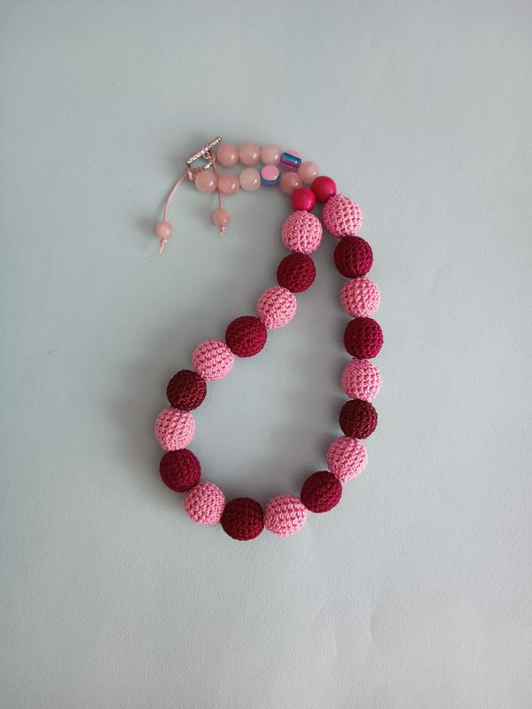 Бусы вязанные, розово-бордовые.