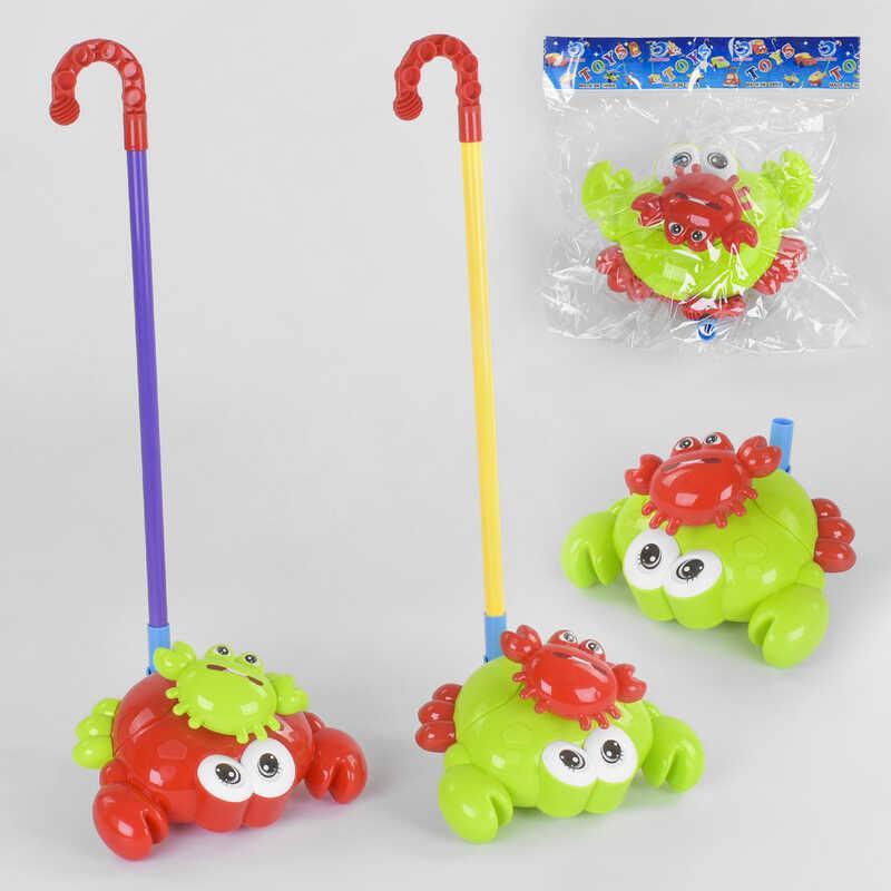 Каталка на паличці «Крабік» під час руху відтворює звукові ефекти та рухає клешнями. Користь від дитячої іграшки з коліщатками на паличці неоціненна для малюка. У той момент коли він робить свої перші кроки, по-перше, каталка виступає свого роду опорою при ходьбі, а, по-друге, така дитяча іграшка стимулює дитину рухатися вперед, оскільки вона яскрава і красива, за нею просто цікаво спостерігати, вчиняти дію. Виріб виготовлений із міцного, безпечного, відповідного всім стандартам якості пластику.