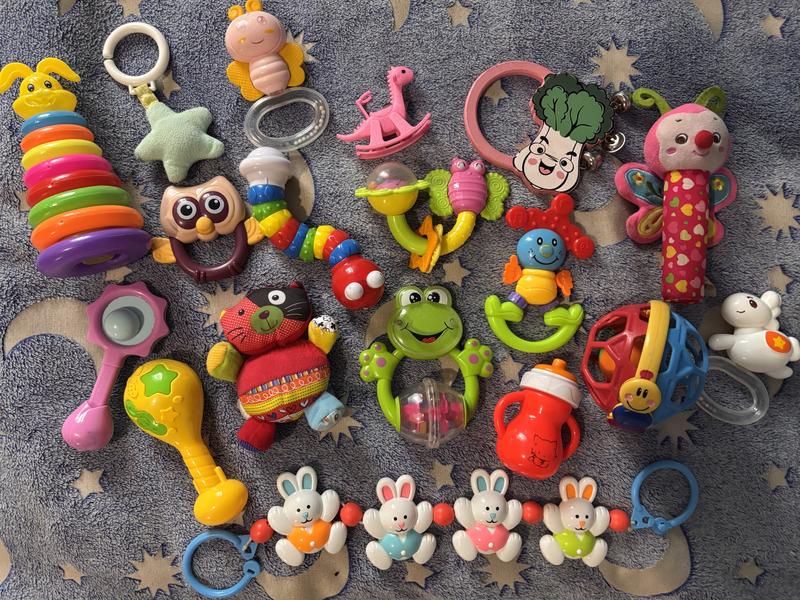 ВЕЛИКИЙ НАБІР (МЕГА-ЛОТ) РОЗВИВАЮЧИХ ІГРАШОК ДЛЯ НЕМОВЛЯТ Продаю великий набір (понад 32 одиниці) брязкалець, прорізувачів та розвиваючих іграшок для малюків від народження до 1,5 року. Всі іграшки в чудовому б/в стані, вимиті та готові до використання. Ми пропонуємо два варіанти покупки: ВАРИАНТ №1: НАЙВИГІДНІШИЙ – ВСІМ ЛОТОМ • Ціна за весь лот (понад 32 іграшки): 700грн • Ви отримуєте готову колекцію іграшок для всіх етапів розвитку дитини та суттєво заощаджуєте, адже ціна однієї іграшки виходить мінімальною! ВАРІАНТ №2: ПРОДАЖ ПОШТУЧНО АБО НЕВЕЛИКИМИ ГРУПАМИ Ви можете вибрати будь-яку іграшку з набору.