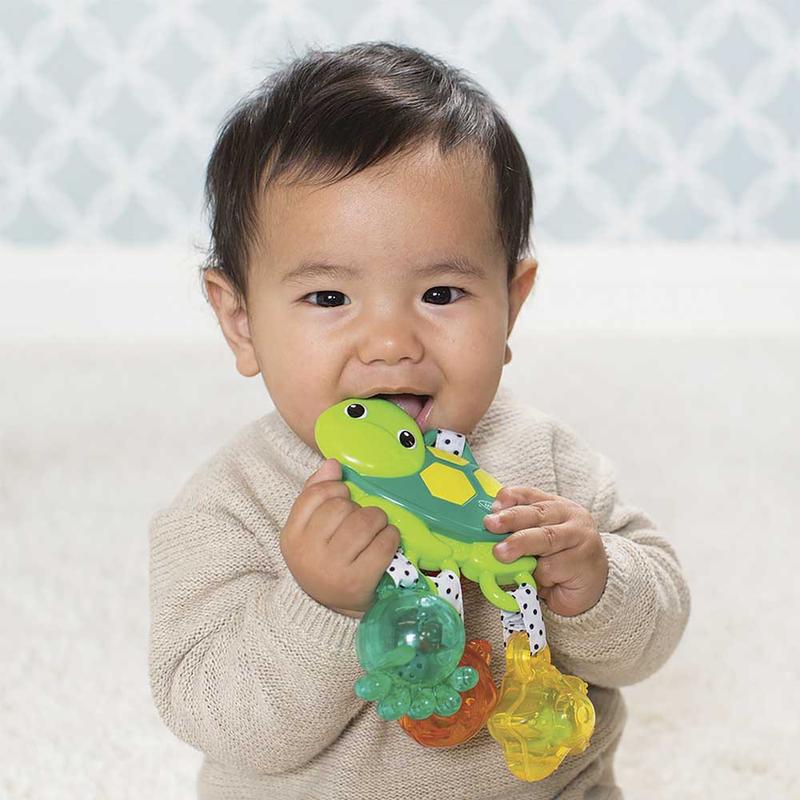 Гребільні намистини в навісних фігурках, роблять гру веселою й дзвінкою. Легко прикріпити до автомобільних сидінь, колясок, сумок для пелюшок та багатьох інших речей.