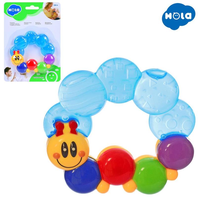 Брязкальце виконане в формі гусенички. Завдяки винятковій якості та відсутності токсичних матеріалів малюк може брати її в рот, щоб почухати ясна. Охолоджуюче кільце має болезаспокійливий ефект. Перед тим, як дати брязкальце дитині, помістіть його на кілька хвилин в холодильник (не в морозильну камеру!). Розмір іграшки: 11*10*2 см. Ширина: 14 Довжина: 19 Висота: 2