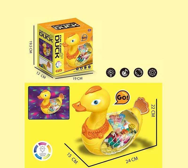 Знайомтесь з новою музичною іграшкою! Ця чарівна качка NR 617-203 стане справжньою знахідкою для ваших малюків! При натисканні кнопки, вона не лише починає яскраво світитися, а й відтворює приємну мелодію, що обов'язково підніме настрій. Додатково, завдяки прозорому корпусу, діти зможуть спостерігати, як різнокольорові шестерні весело обертаються під час руху іграшки. Основні особливості: - Іграшка виконана у формі милої качки; - Яскравий та різнобарвний дизайн, а також прозорий корпус; - Мелодія, яка грає під час гри; - Яскраве підсвічування, що дозволяє використовувати іграшку як світломузичний пристрій; - Працює на 3 батарейках типу “АА” (не входять у комплект); - Обладнана колесом вільного ходу, що дозволяє качці залишатися на місці або кружляти; - Рухомі шестерні забезпечують додаткову цікавість; - Без гострих кутів для безпеки дітей; - Виготовлена з міцного та безпечного пластику.