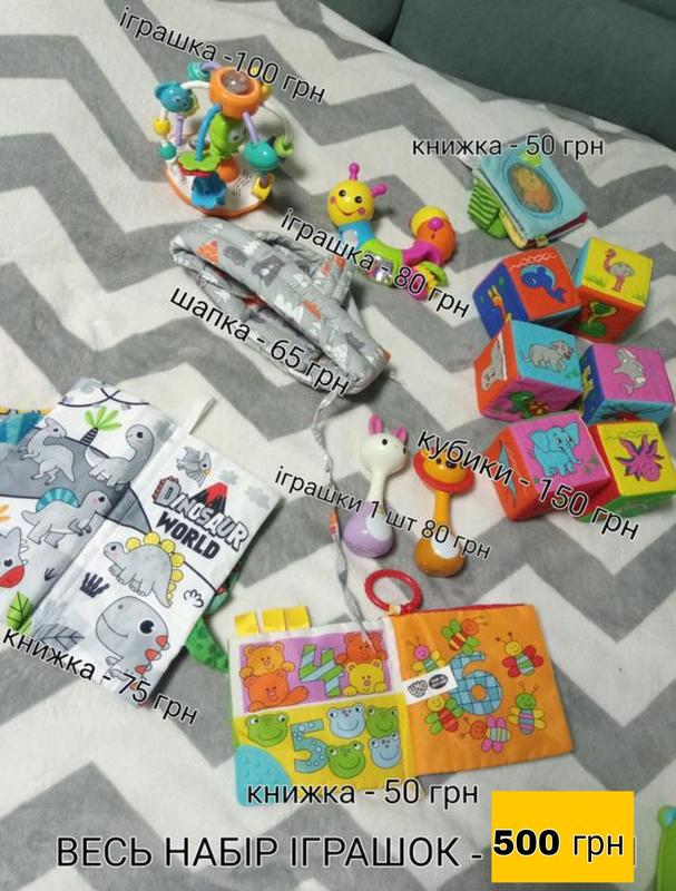 Всі іграшки в дуже гарному стані і працюють! Іграшки підходять для дитини від 3 міс до 1.5 років НАБОРОМ віддам за 500 грн!!! + додам подарунок іграшку Можна вибрати окремі іграшки, ціни розписані на фото. 1. книжка з жабкою, вся м'яка (50грн) 2. книжка з динозаврів, з пищалкою і хвостиками (75грн) 3. книжка акваріумом, м'яка з тактильним елементом (50грн) 4. захисна шапка на голову.(65грн) 5. іграшка музична (лев та котик) грають пісеньки та реагують на рухи і світяться , можна використовувати як гризуньці , десь від 3 міс (80грн - 1 шт) 6. кубики м'які з тваринами 6 кубиків ( 150 грн) 7 іграшка музична з жабкою., грає музика, крутяться тактильні елементи (100 грн) 8. іграшка гусениця , всі елементи крутяться (80 грн) Питайте)👍