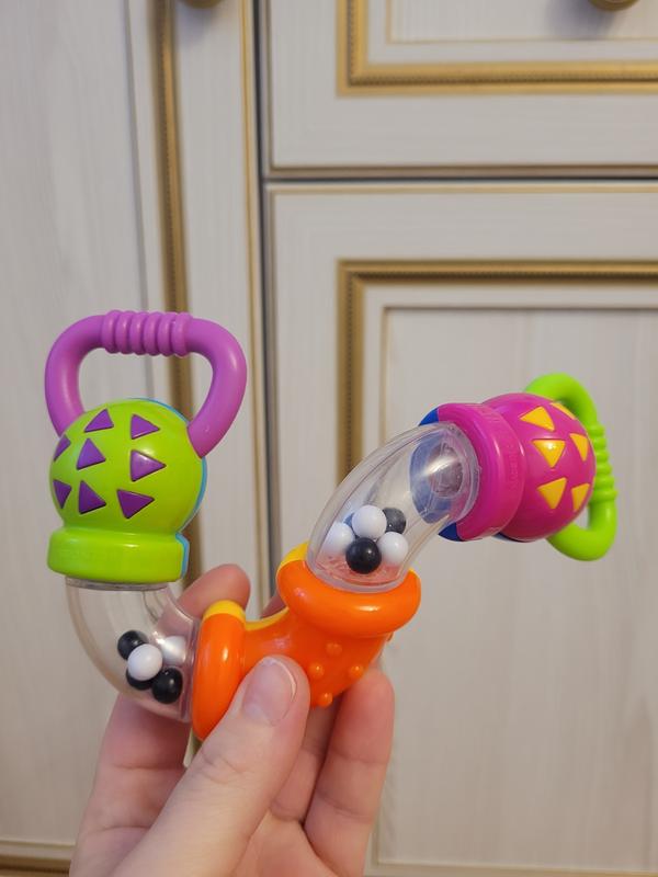 В ідеальному стані брязкальце Зиг Заг Клікер від Країни Іграшок з серії Сонячний зайчик! Це чудова іграшка, яка не лише привертає увагу своєю веселою палітрою кольорів, але й захоплює малюка різноманітними звуками клацання та рухливими елементами. Особливості: • Повороти брязкальця створюють веселі звуки клацання. • Можливість згинати іграшку в різні форми допомагає досліджувати нові варіанти маніпуляцій. • Потрясіть брязкальце, щоб почути брязкаючі звуки, що додають веселощів до гри. Розвиток: Це брязкальце сприяє розвитку дрібної моторики, слухових навичок і пізнавальних здібностей, допомагаючи малюкові досліджувати нові звуки та форми.