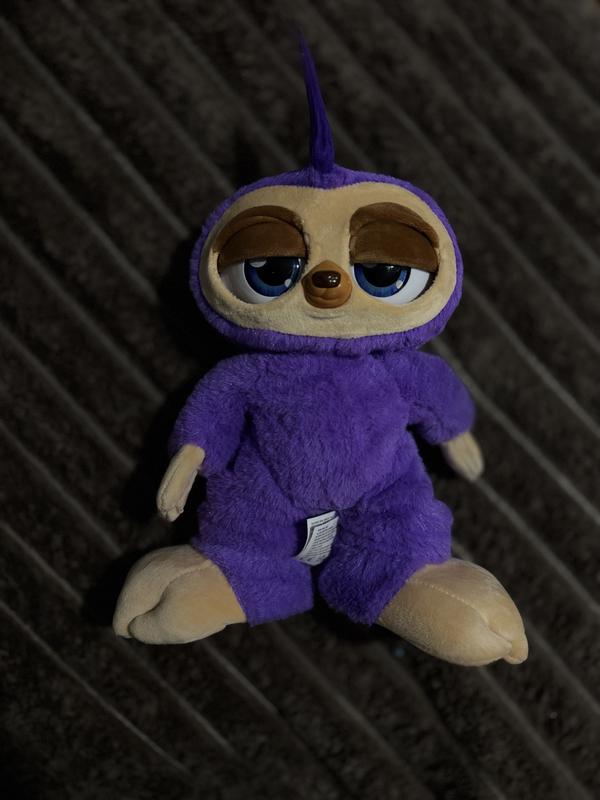 Стан Нового! Все працює , відео можу скинути! Іграшка виконана у вигляді лінивця з яскравим фіолетовим хутром та світлими лапками. У неї великі блакитні очі та милий вираз обличчя. Лінивець вміє танцювати, кумедно рухаючи руками та тулубом, а також кліпати очима. Іграшка може виконувати рухи під три різні мелодії, що запам'ятовуються. Щоб розпочати веселощі, достатньо натиснути кнопку на носику лінивця.