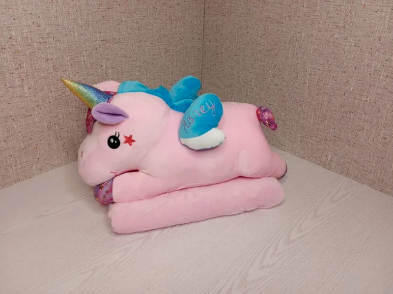 М'яка іграшка плед рожевий єдиноріг 3в1