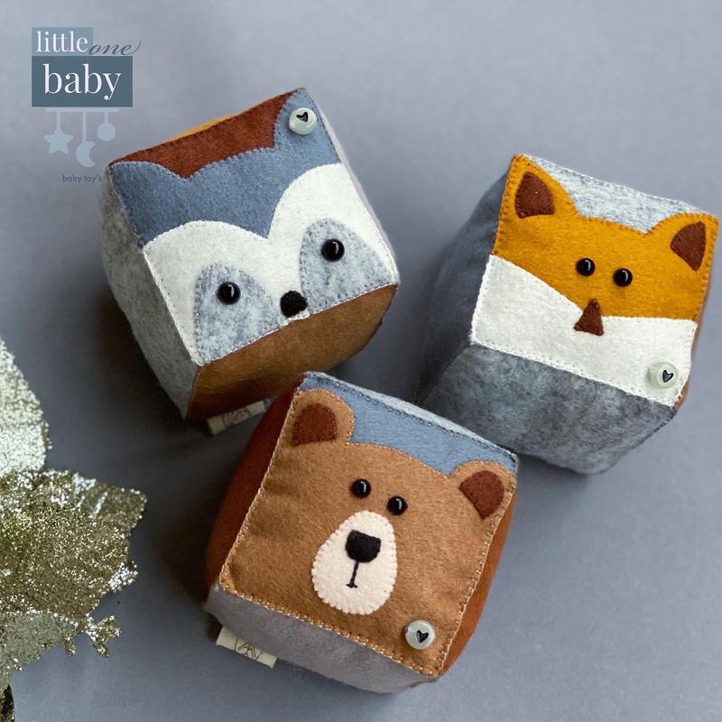 Кубики-погремушки🐺🐻🦊 Материалы: 🪡фетр 🧶нити (хлопок) 🍀наполнитель: холофайбер ⚪️внутри кубика шарик- погремушка Размер: 6 см* 6 см*6 см Наши игрушки не просто имеют уникальность, но и экологичность, что есть важным моментом в подборе игрушек для малышей. Они помогут развивать моторику рук и координацию глаз, движения. Уникальные игрушки помогут маме/папе занять ребенка на время, что бы выделить немного минуток для себя💚 Это есть немало важным для активного ритма жизни мамы/папы в декрете. Все игрушки изготовлены из экологически чистых материалов, не вызывают аллергии🌿 потому они безопасны с рождения. ❕О ручной работе Помните, что нам важна каждая деталь, потому каждая игрушка шьётся вручную. Мы гарантируем качество пошива и износостойкость наших игрушек при использовании рекомендаций, которые вы найдете внутри упаковки. Важно ❗️ Вы можете приобрести комплект игрушек на подарок🎁 Каждый комплект имеет упаковку, которая неотменно порадует обладателя! В наборе вы найдёте инструкцию по уходу за игрушкой🛁 📦У нас самая быстрая отправка и короткий срок изготовления! Цена за комплект кубиков (3 шт): 750 грн.