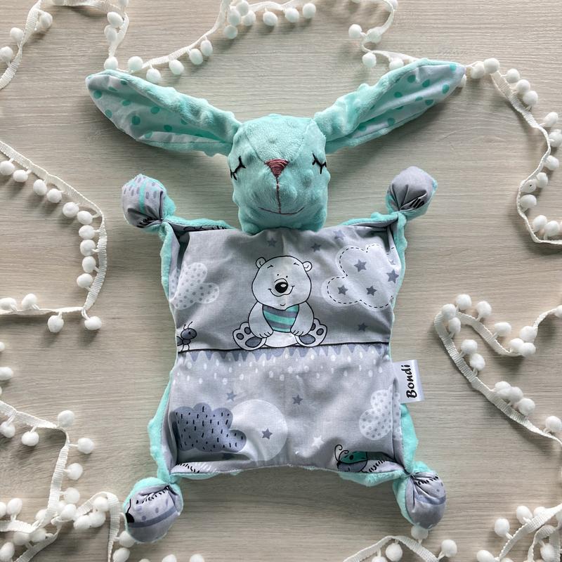 Новый зайчик-комфортер, есть разные цвета, пишите. Это специальная игрушка-салфетка, пропитанная запахом мамы. Забавную вещичку в виде зайчика, мишки или слоненка кладут рядом с мамой во время кормления. Ткань пропитывается маминым запахом, и это помогает крохе чувствовать себя комфортно. Поэтому игрушка-салфетка и названа «комфортер». Игрушка не имеет мелких пришивных или приклеенных деталей, поэтому абсолютно безопасна. Можно стирать вручную либо в стиральной машине. Состав: Хлопок 100% Мягенький плюш Гипоаллергенный холлофайбер Есть и другие варианты, возможен пошив на заказ, пишите скину фото !!!