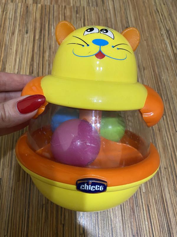 Юла-неваляшка два в одном. При многократном нажатии на голову кота начинают кружиться шарики внутри. Есть мелкие царапины.