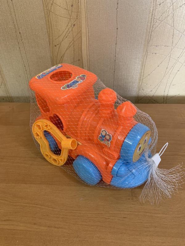 Іграшка - каталка "Паровозик" на паличці призначена для діток від 1-го року. Іграшку можна безпосередньо використовувати як каталку або як паровозик сортер. Розмір іграшки: 24*15*17 див. нова Іграшка.