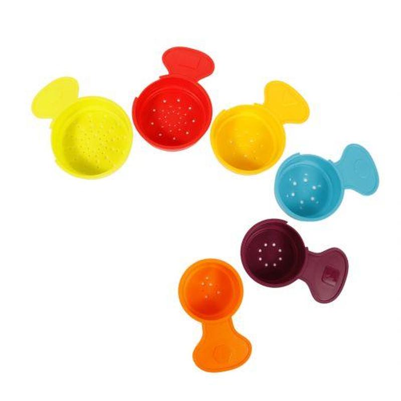 Ігровий набір із 6 чашок з отворами в донечці, для гри у ванні. Іграшка допомагає стимулювати зорово-моторну координацію малюкам, які вже почали сидіти та повзати. Розвиває дрібну моторику рук і тактильні відчуття. Яскраві кольори привернуть увагу дитини та збільшать цікавість до навчання. Також підійдуть для гри в пісочниці.