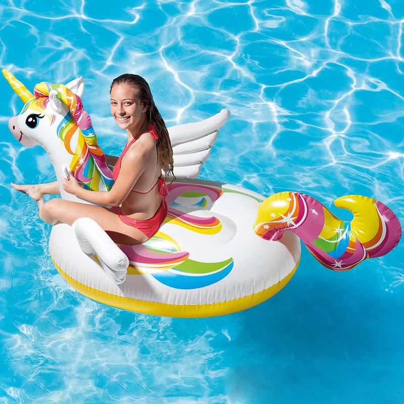 Приємною родзинкою плотика Єдиноріг є оригінальний дизайн у формі казкового персонажа з доброзичливою мордочкою. У зовнішньому оформленні переважає білий колір, а також райдужні відтінки крил, гриви та хвоста. Складається з 2 повітряних камер і обладнаний 2 зручними ручками-тримачами. Він ідеально підходить для літніх ігор у воді — на березі моря або озера, або як зручний надувний матрац для прийняття сонячних ванн і відпочинку на березі водойми. Виготовлений із вінілу завтовшки 0,30 мм. Розмір щільності 201 * 140 * 97 см. Розмір коробки 25 * 10 * 27 см.