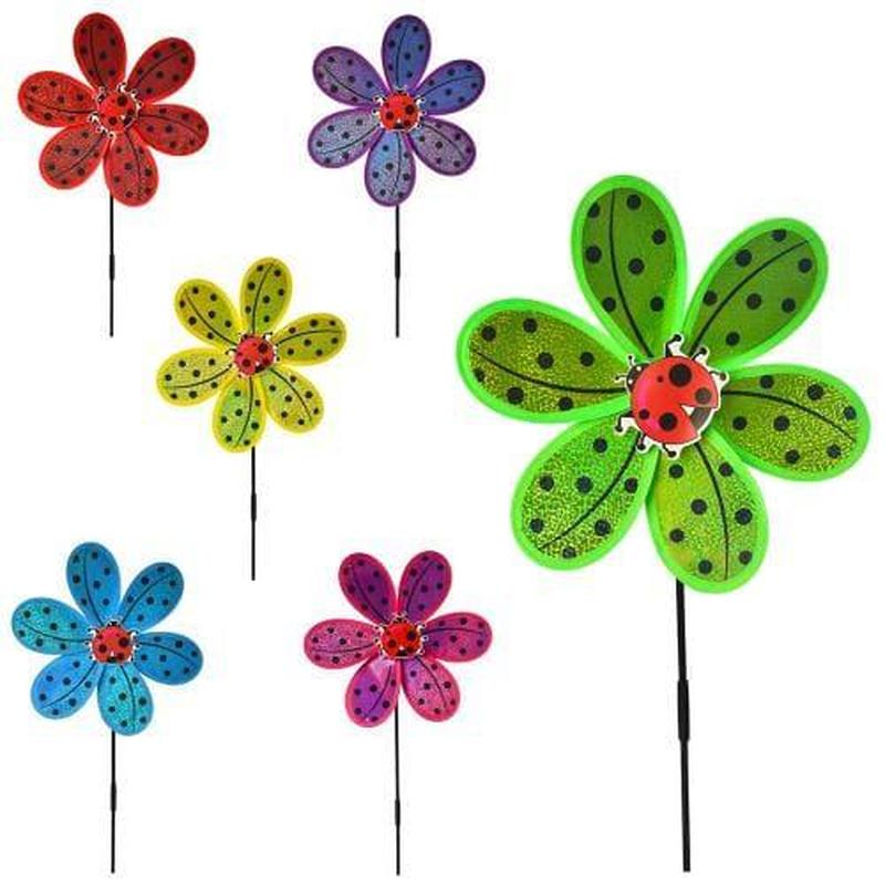Іграшка "Вітрячок", квітка 6 кольорів. Діаметр - 28 см. Довжина палички - 50 см. Упаковка - пакет. Розмір - 28х28х2 см.