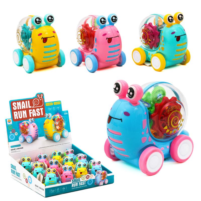Іграшка "Равлик", 10см, 4 кольори. Інерційний механізм, шестерні, світло. Живлення - батарейка типу таблетка. Упаковка - дисплей, 12 шт. Розмір - 32х9х31 см.