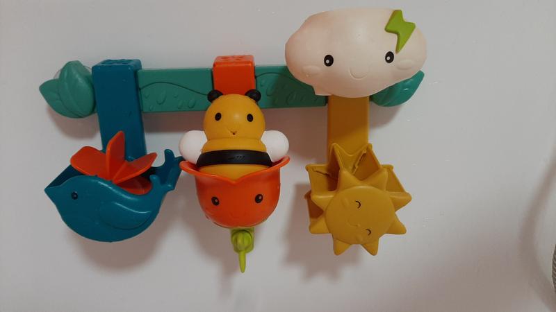 Ігровий набір - ВЕСЕЛИЙ ДОЩИК - це одна з найкращих іграшок для ванної для малюків. Пластикова основа іграшки кріпиться на 2-х присосках до ванної поверхні.2 водяні млини, що обертаються, і чаша у вигляді квіточки з краником.Іграшкова бджілка бризкається водою.Полийте пташку водою, щоб колесо почало обертатися.Вода біжить через хмару, що змушує сонечко крутитись.6 знімних деталей. Ігровий набір - ВЕСЕЛИЙ ДОЩИК S2 для гри у ванній допоможе малюку у розвитку: уяви,емоційного сприйняття,вміння грати. Розмір іграшки 37,4 х19, 8 см.