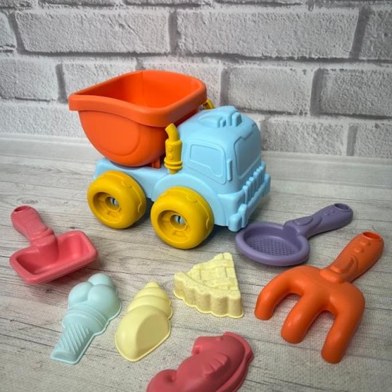Пісочний набір (913-326),самоскид,сито,лопатка,граблі, 3 формочки,рухомі елементи,в сітці