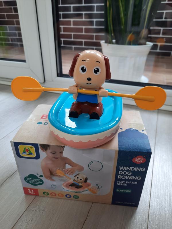 Заводна іграшка для веселого купання. Собачка на лодці веслує з води. Стан нової!