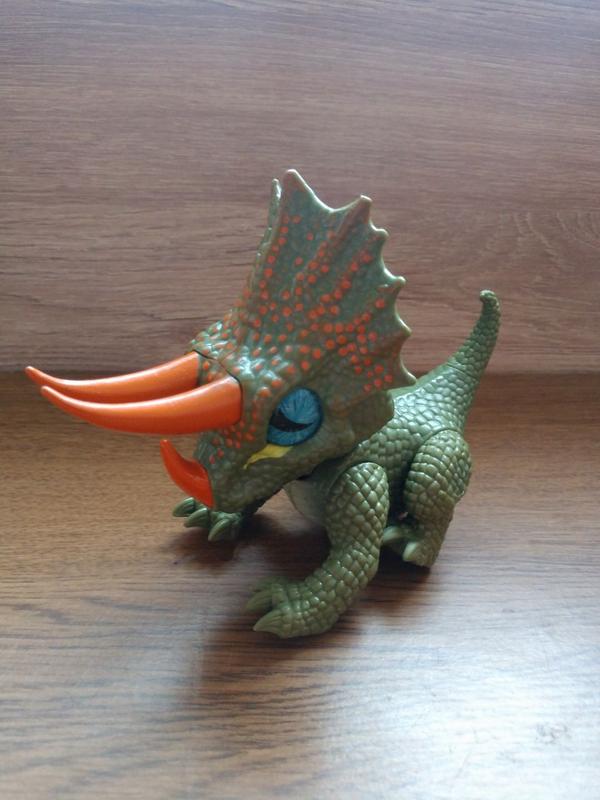 Динозаврик з міцного матеріала, гарно деталізований. Лапки, голівка рухомі. Озвучений, при натискані голови видає звуки та відкриває пащу. Б/у, у відмінному стані. Працює від батареєк (додаються). Розмір: 12 х 14 см. За запитом відправлю додаткові фото або відео. Доставка по Україні за рахунок покупця. Від суми 1000 грн. доставка безкоштовна. Повернення немає. Варіанти оплати: Повна оплата (100% на карту Приват або Моно) Передоплата 100 грн (не повертається)