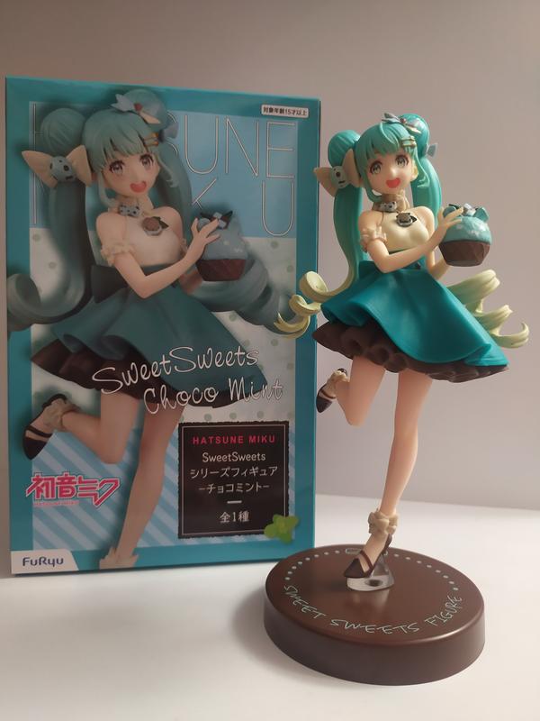Аніме фігурка Міку Хатсуне 19 см. Фігурка нова. В коробці. ПВХ. Виробник Furyu Hatsune Miku Sweet Sweets Series - Choco Mint Pearl ver. Фото фігурки в наявності. Безпечна оплата шафа. Передплата на карту. Накладеним платежем по передплаті 100 грн.