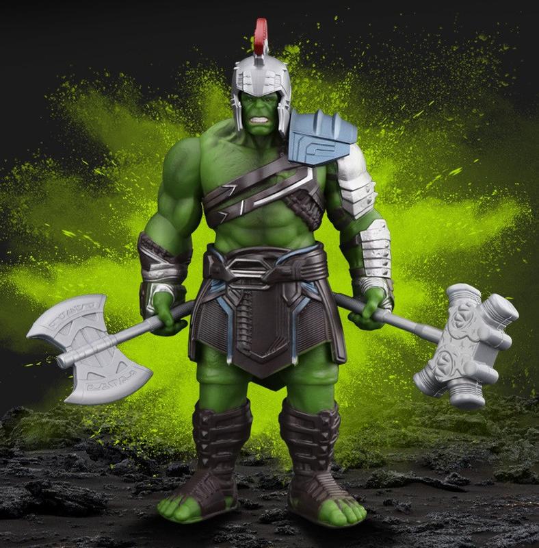 Фигурка выполнена в стилистике Халк Гладиатор из фильма Тор: Рагнарёк. Огромный зелёный и неукротимый воитель, для которого не существует никаких преград! Игрушка очень хорошо детализирована в доспехах гладиатора с оружием и шлемом. Голова, руки и ноги у него вращаются в разные стороны, снимается шлем, что делает игру очень интересной. В наборе: фигурка, шлем, топор, секира, и запасные кулаки. Размер фигурки 18 * 7 * 30 см. Размер коробки 38 * 9 * 35 см.