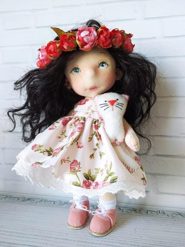 Ясный цветочек в росе Улыбается ко всем: Джелику и пчелке, Яблоневой ветке, Джерелла глубокому, Солнышко высоком, Песику ушейому, Котику хвостатому И ко мне, как весна, Улыбается она. малышка 24 см, сшита из бязи, обтянута трикотажем.. голова, ручки и ножки подвижные, волосы - козочка, можно расчесывать и делать прически . Товар изготавливается по заказу
